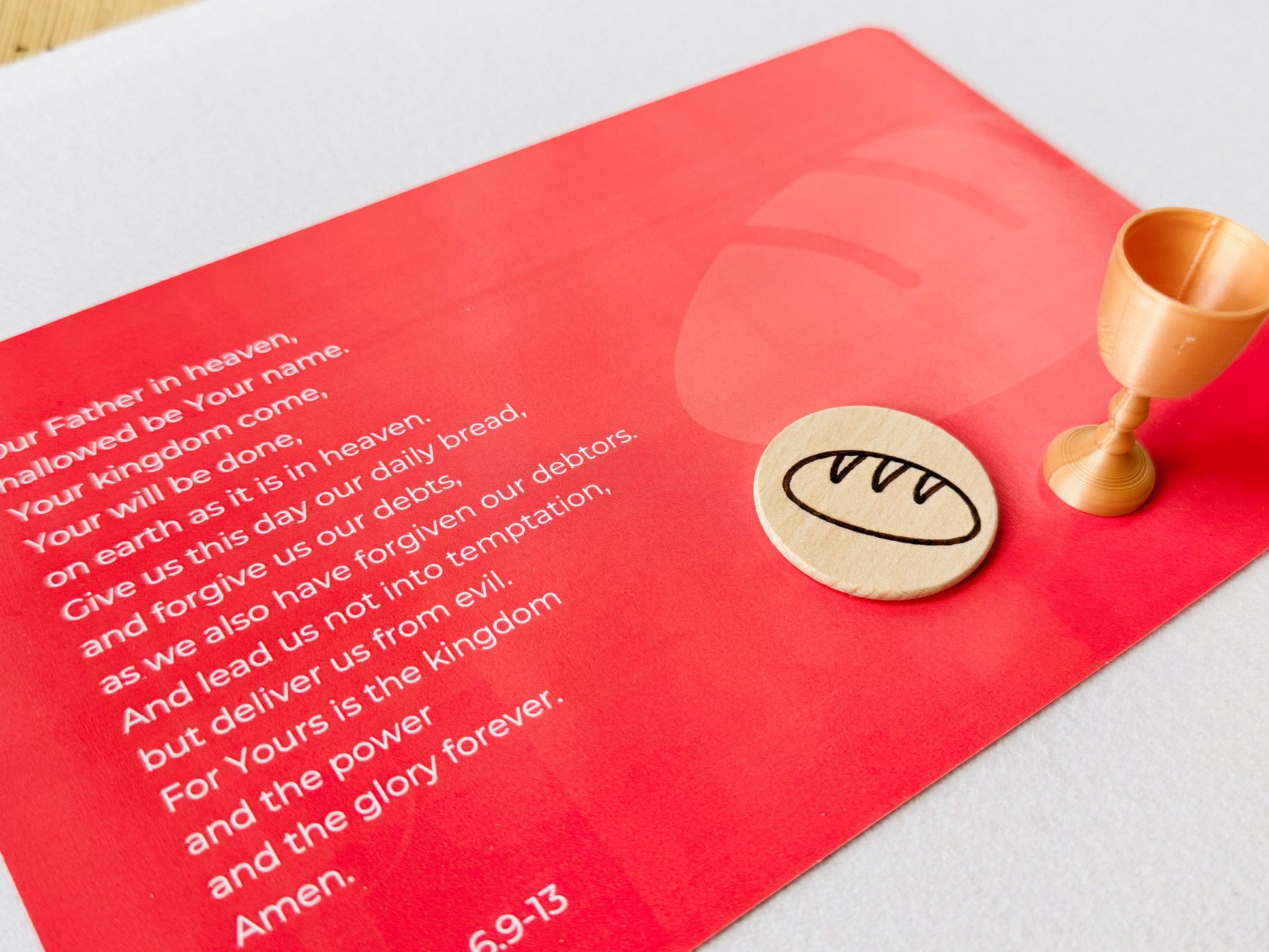 Encourages Scripture memory through the included Matthew 6.9-13 card