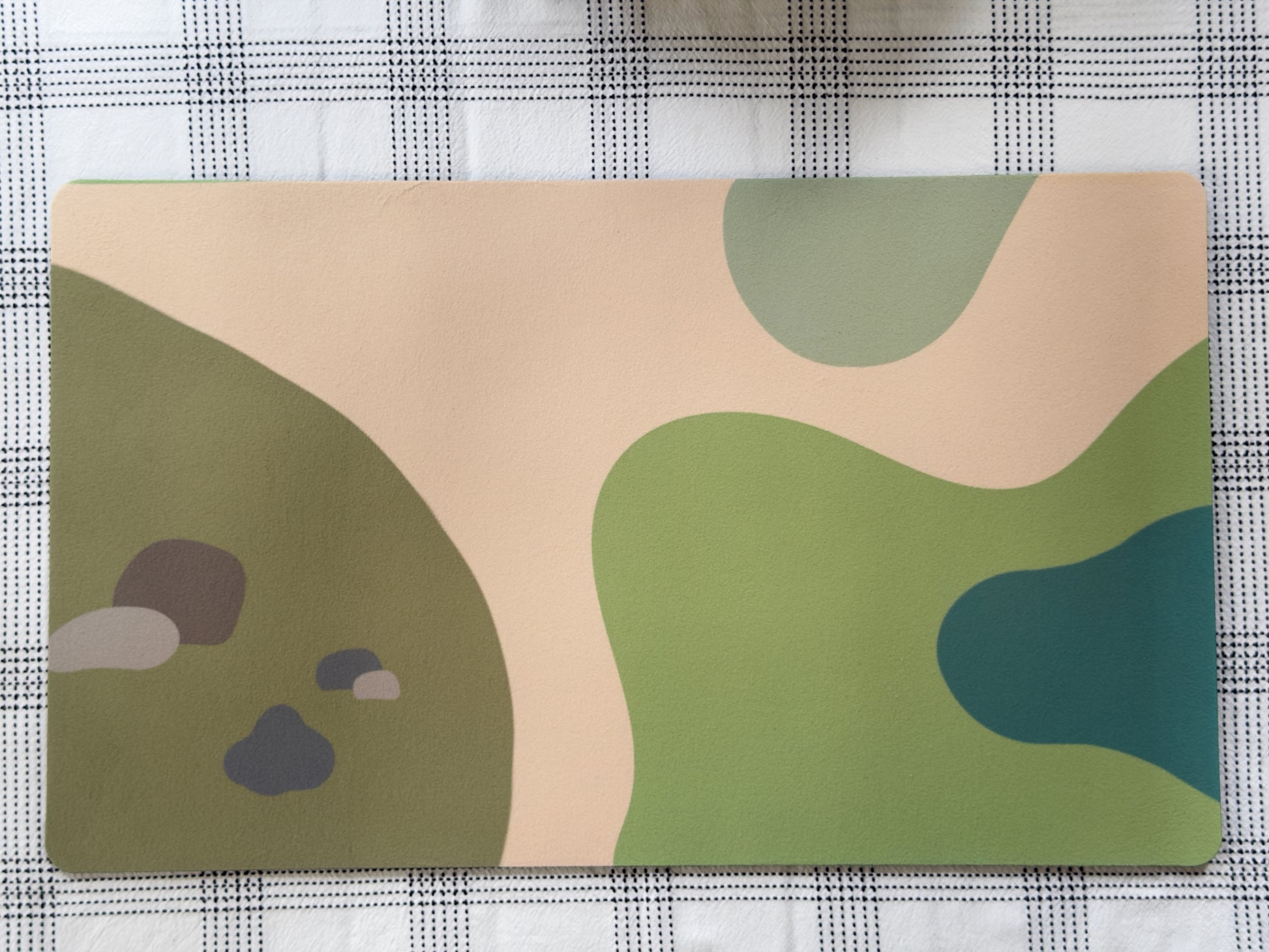 Good Shepherd Story Mat (18" x 30") – A felt-like polyester top with a non-slip rubber base. The vibrant design features a pasture, a winding path, rocky “dark valley,” and calm “quiet waters.” (Note: this story mat will be used in upcoming story sets, so it is versatile!)
