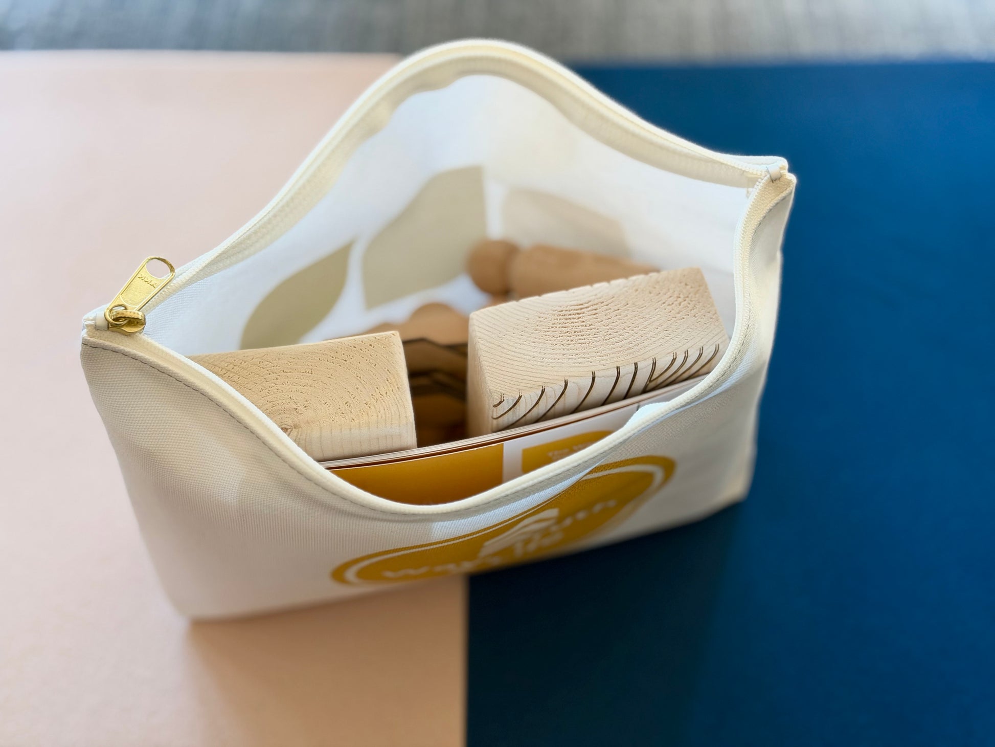 Double-sided pouch featuring path imagery and seasonal Epiphany golden hues. Durable polyester with zipper closure—perfect for storing all figures and story cards.
